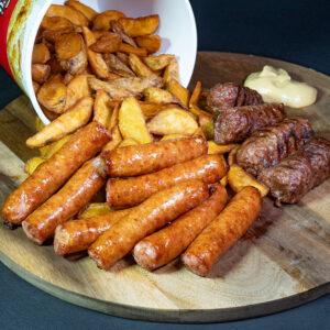 4 mici, 4 carnati, cartofi prajiti, 2 buc. mustar